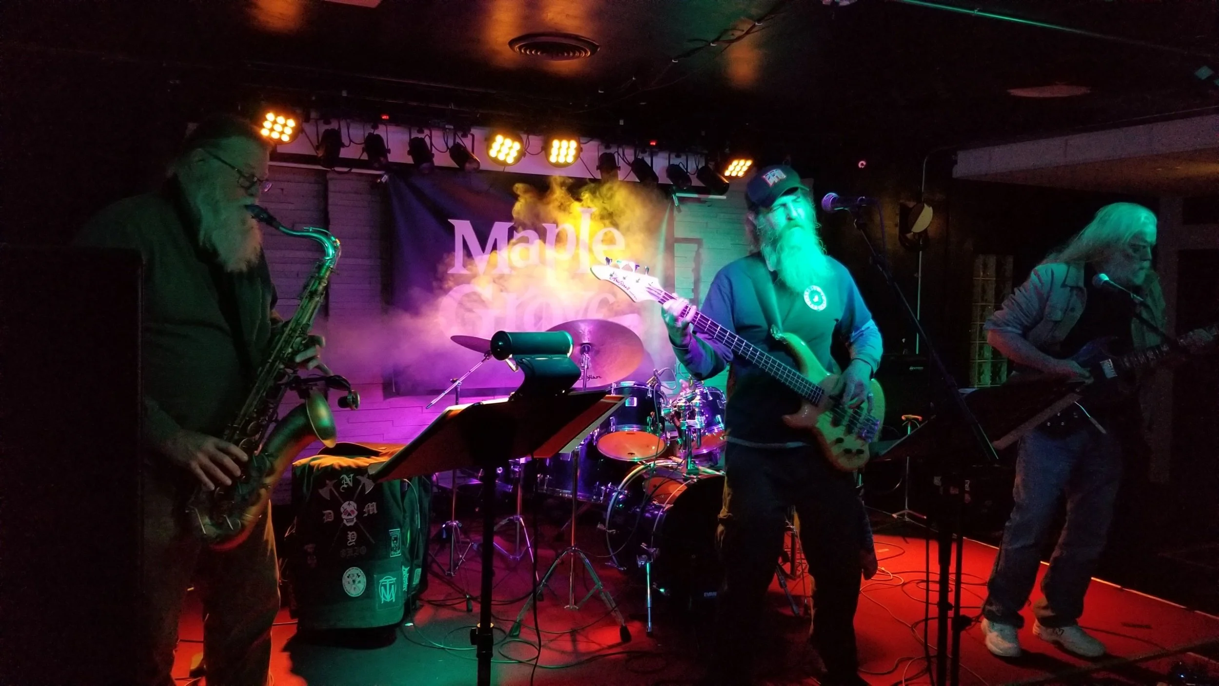 Finally, closing out the evening was our headlining performers, The Rick Ray Band. This is a legendary band who has a whopping thirty-seven albums to their name and decades of experience under their belts. They are built from four musicians: Bass/Vocals, Guitar/Vocals, Saxophone and Drums. Due to issues with a sore throat, Bassist “Shaggy” would be handling lead Vox for the show, as opposed to Mr. Ray himself. After another introduction by Big Bri, The Rick Ray Band was set for launch. They opened up with a Sax heavy instrumental jam. The Guitar riffs were on point and the solo that followed was amazing. The Bass line was bouncing, grooving and oh so smooth. The song unfolded and I was blown away by the Classic Rock sound. The rest of the crowd apparently agreed, joining me in my raucous applause. Second they broke into the title track from the The Rick Ray Band’s newest album, “The Gremlins are Listening.” I noted that the Bass sound was phenomenal as was the Shaggy’s stage presence. He spun in circles while playing then returned to the mic to deliver the verses. The music played out in a smooth flow during the vocal portions then evolved into a very jam sort of feel in the breaks between. The exceptional musicianship continued at all positions, as the musical trek unfolded. “The Note Police” was next, and I’ll tell you I loved this one. It opened Sax heavy with some spoken word vocals and was very Rockin’ to begin. Then it dropped into a melodic portion with a haunting Sax line and impressive Guitar flourishes. Returning back to that Rockin’ rhythm it rolled on and alternated this way. Fast and dance worthy then melodic and emotional. It was an excellent composition. On “From Absent Friends” they put forth a softer feel. It had an incredibly emotional quality to it, expressing mourning, longing and had an overwhelming sort of Rainy Day vibe, that I just can’t convey it properly here. Suffice to say this song had an abundance of heart and soul.