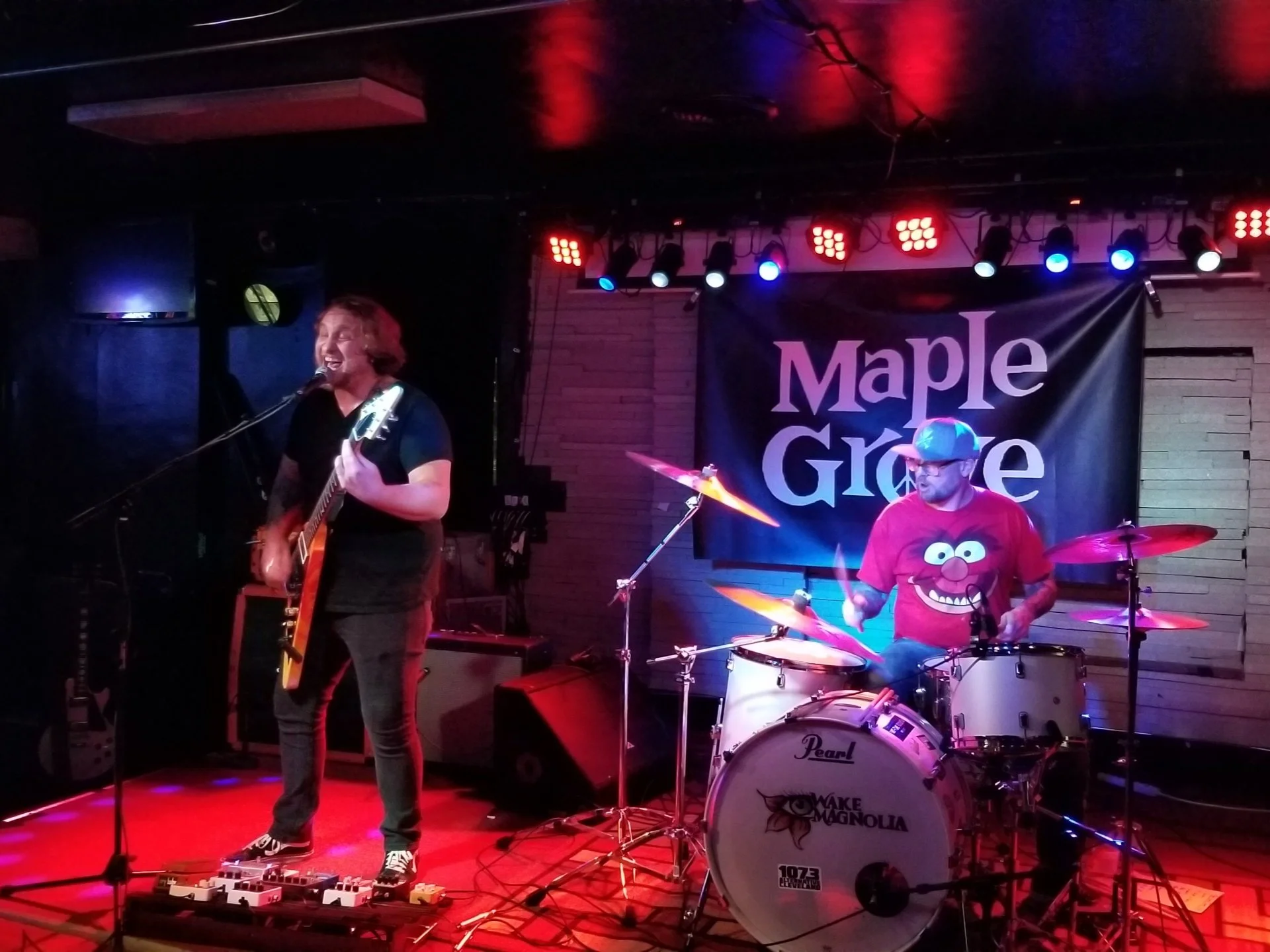 Second on the evening’s agenda was Wake Magnolia. This is a two man operation constructed from Guitar/Vocals and Drums. After another introduction by Big Bri, Wake Magnolia was set loose upon the Maple Grove. They opened up with an upbeat rock sound, utilizing clean vocals with some screams for emphasis. Immediately I noted that the frontman of the band had great stage presence as he Rocked out behind his mic. Beneath a cloud of fog they began their second number with some clean, lightly strummed Guitar chords. When the distortion eventually kicked in, it was a hard hitting moment. The Drummer was playing especially hard here and I was impressed. Add that to the fact he was wearing an “Animal” shirt from The Muppet Show, and I have to say I liked this guys style. Next they played “Windmill,” which had a melodic, kind of love song feel. I made a note that read the singer got pretty intense on this number. Their forth track was described as “an angry song” and was appropriately titled “Hate the World.” The frontman upped the intensity, adding some nice growls to his voice. He also delivered a Guitar solo that left the crowd cheering. Their fifth song was about “self love.” It was slower, melodic and kind of sing-songy. It also packed in another tight solo that impressed the fans. On their sixth song Wake Magnolia continued with the melodic stuff and it was delivered with passion. Their seventh cut was jam packed full of “Whoa’s!” and had an Alternative Rock feel with some serious Punky vibes. Their eighth song was a new one. It started out slow, but built toward a big finish and had some cool Guitar work along the way. On their ninth track they got especially heavy for their style of play. With crashing Drum work and the singer allowing a snarl to creep into his voice, this song was delivered with power. Closing out the set they played their track “Bruiser,” which had some outstanding and pounding drum work. Wake Magnolia had been a very good act. Their style of Punk infused Alternative is one that is sure to to make you want to sing along to every song. They play hard and with a load of passion and for some reason, I always dig a two piece act. Check out Wake Magnolia for a fun vibe with a lot of heart.