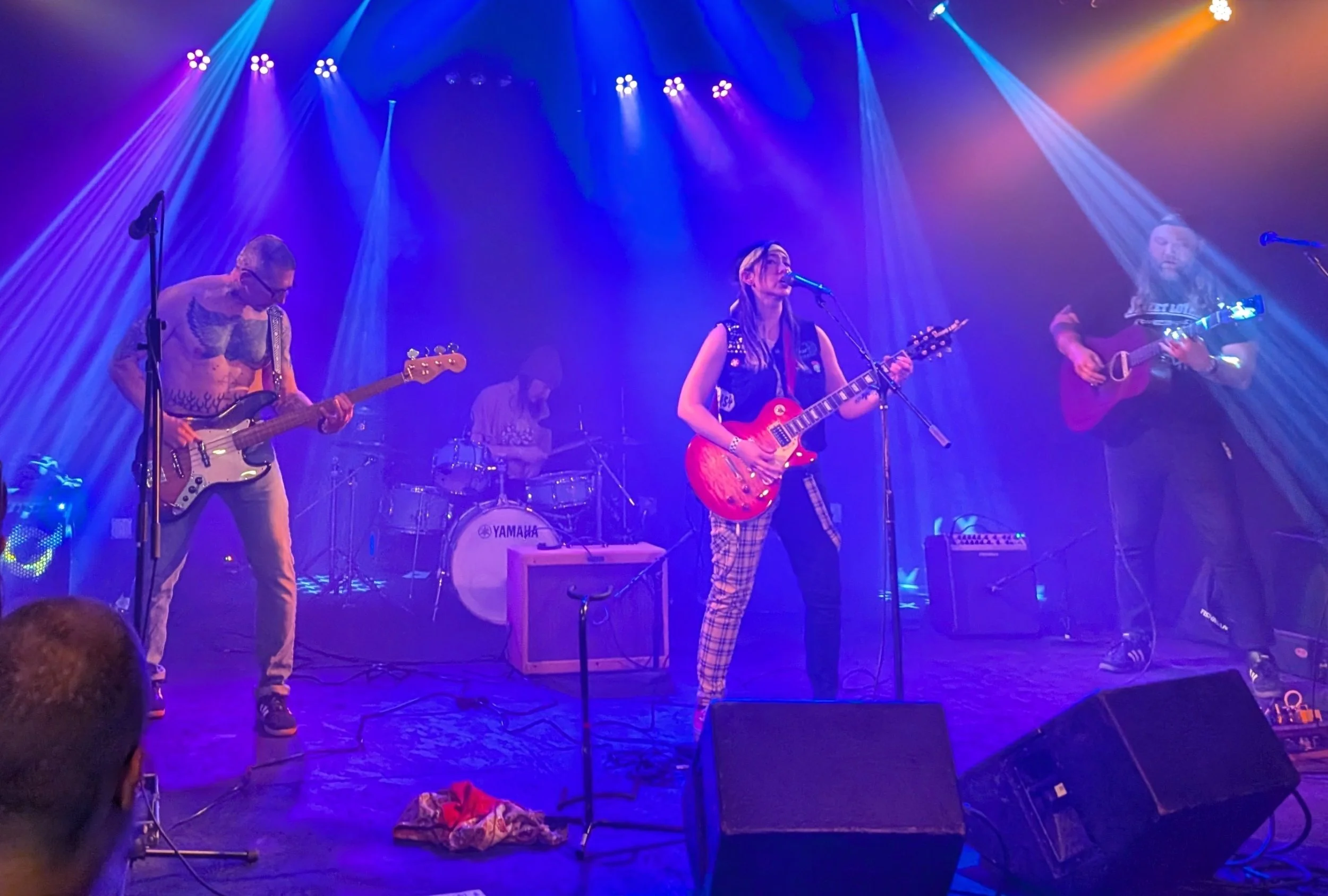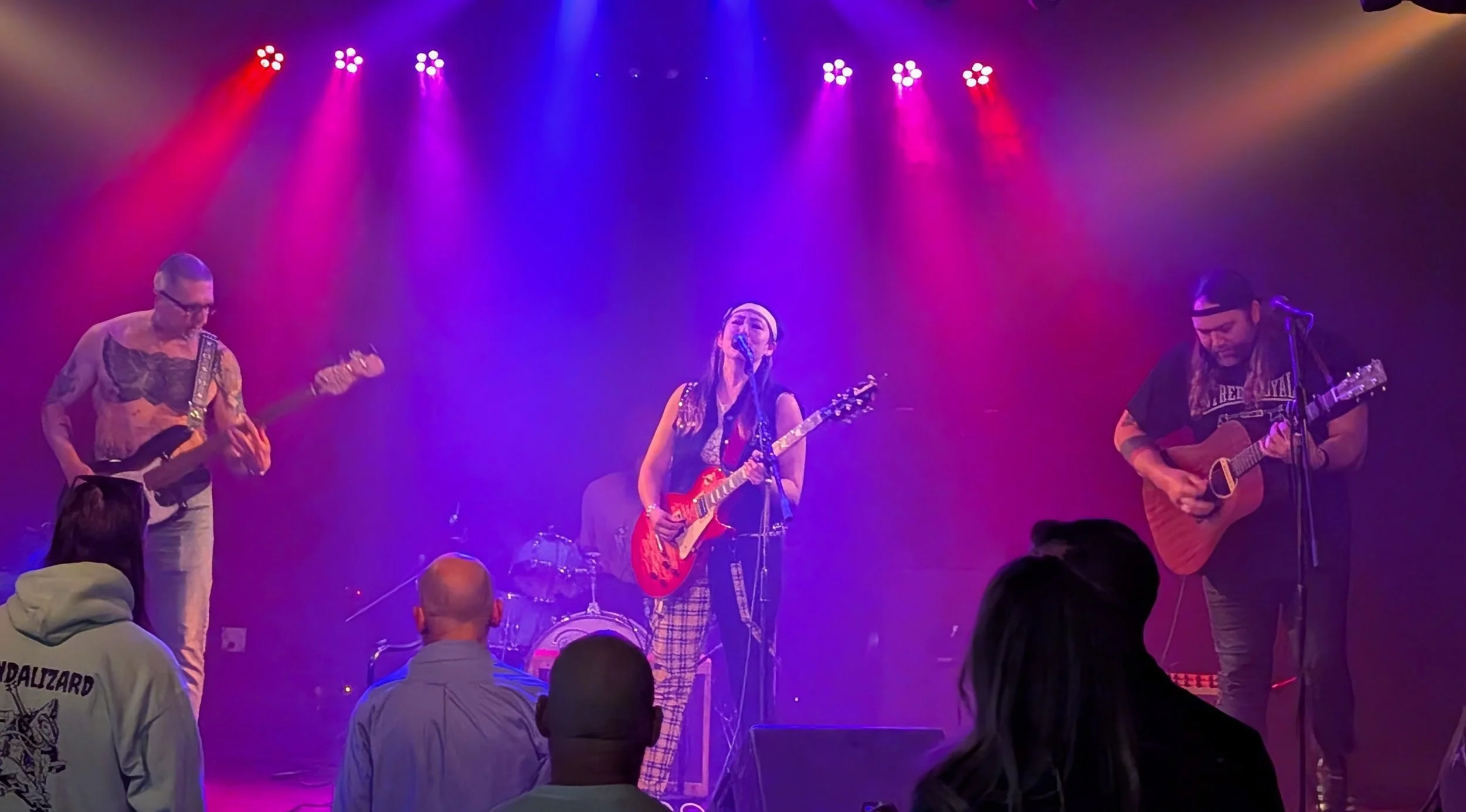 All in good time we were right back inside as we strapped in for some more music. Second in lineup was Libcor. This is a four member, female fronted, Alternative Rock band. They are built from Guitar/Vocals, Guitar, Bass and Drums. I found it interesting that the Vocalist played an electric Guitar while the 2nd Guitarist held an acoustic. (Their second Guitarist was apparently playing with an injured hand.) They had a sound that was Rockin’ yet smooth. Their Bass Player was getting down, constantly moving and grooving. Throughout the set he would beguile us with his wicked play and excellent onstage moves. They singer had a big vocal presence that was strong and soulful. The Guitarist laid out some nice lead licks, that peaked my interest. The crowd, which had grown considerably, was into them right off the bat.
