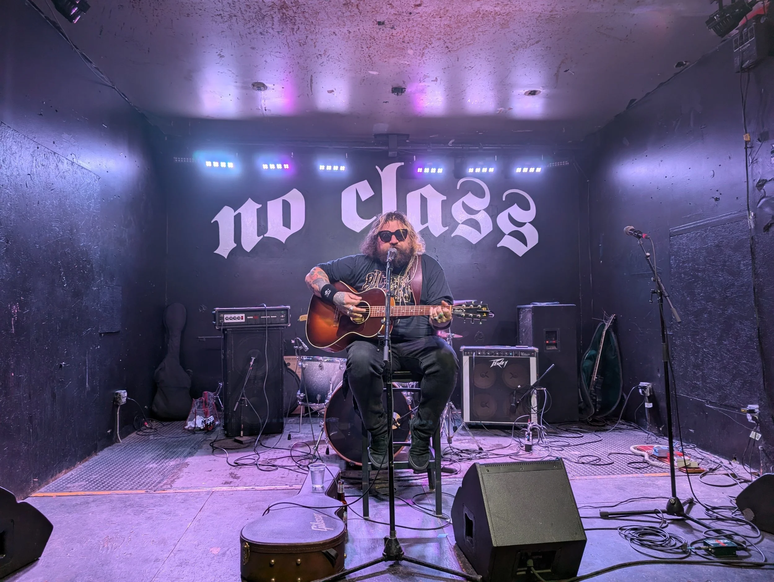 Up first, coming out of Detroit, was Dr. Haj. This is a solo acoustic performer: Just a dude and his Guitar. Wearing sunglasses and a Buc-ee’s T shirt he addressed the crowd like a lone gun fighter. I suppose you could call what he did Folk Rock, if you were so inclined. I wasn’t familiar with his music, but based on the amount of people who were singing along, I assume a considerable portion of the set was comprised of covers. He opened up with a rendition of “In The Pines” which I thought was pretty damn good. His delivery was smooth and soulful and often quite passionate. The crowd responded positively all the way through, joining in on vocals and applauding heavily after each song. On his fifth number, he alleged that the lyrics of the song would be entirely ad-libbed, which was cool.