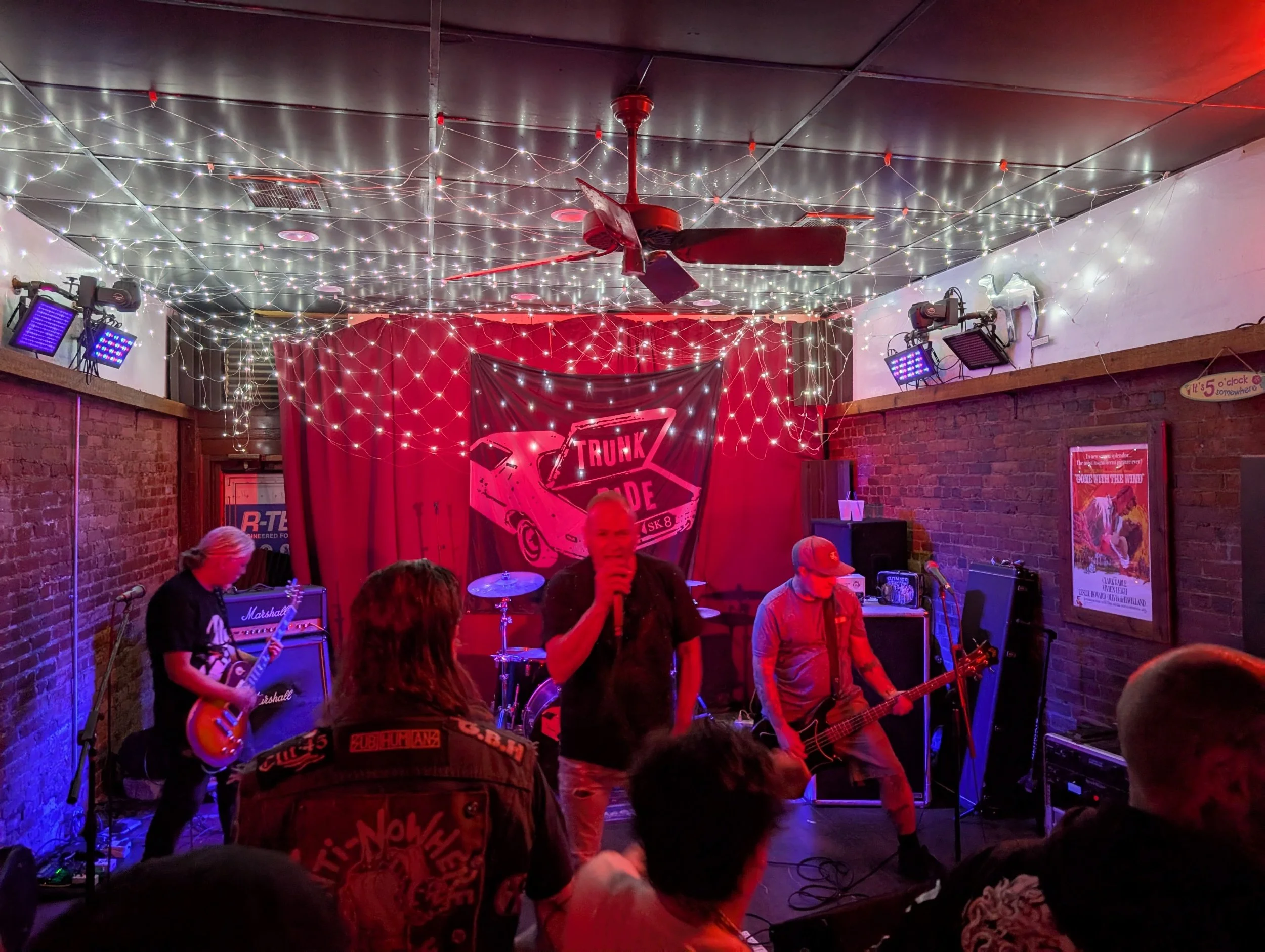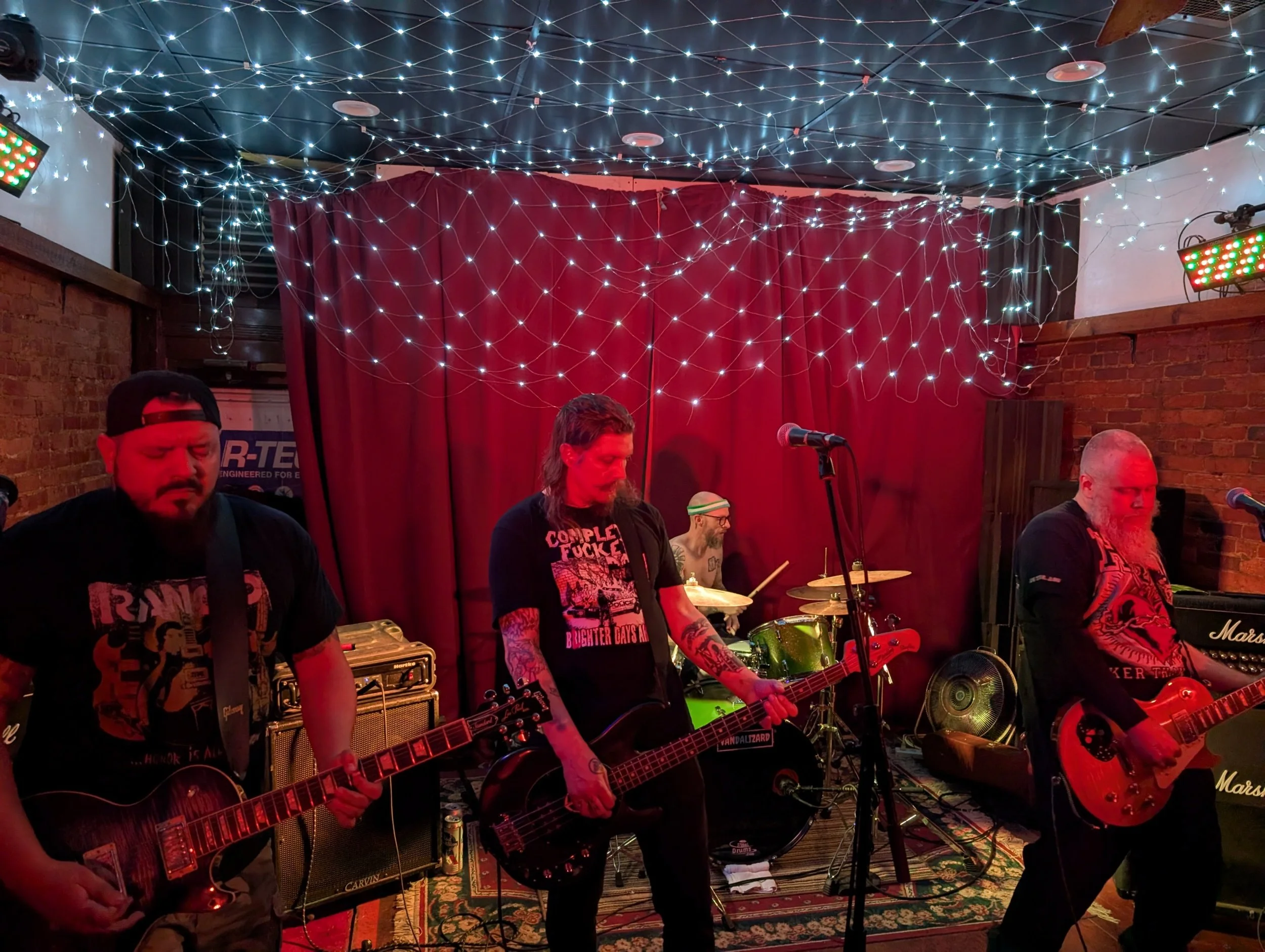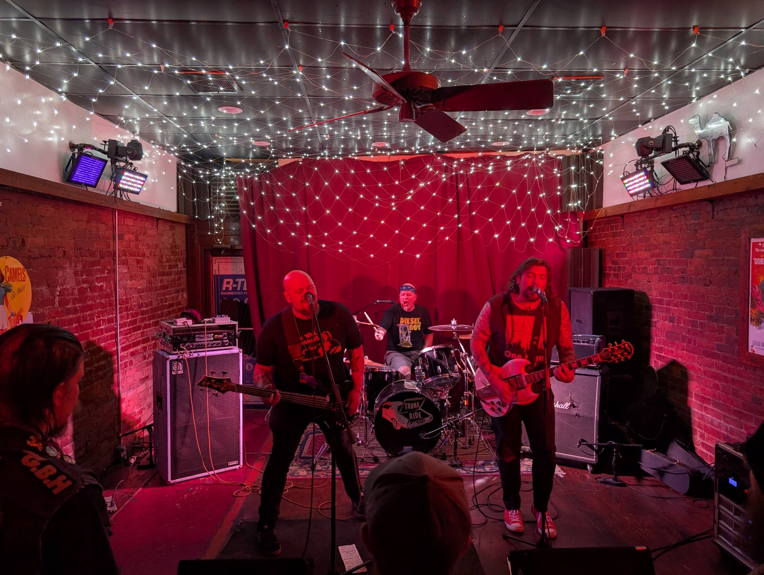 Soon enough we had reached our headlining act, Canton, Ohio’s Trunk Ride. This four man outfit is constructed from Vocals, Guitar/Backing Vocals, Bass/Backing Vocals and Drums. They are known for their hard, fast and aggressive approach. They deliver power packed, short songs that pack a serious punch. Their sound is clean Vox, high speed riffs, crushing Drums and Bass. Across the board the stage presence is phenomenal. Especially their singer who is a whirlwind of activity: intense, energetic and in your face. The crowd dug it immediately. Their were cheers which led to dancing. Which in turn led to Moshing. The Pit grew fast. The moshing went from two dudes messing around, to a whole bunch of dudes really quickly. It maintained it’s ferocity for the entirety of the set… and the set was lengthy. I lost count of tracks somewhere around number 10 but they played well beyond that point. Based on the set list I saw I would say they played around 20 songs in total and they were blazers. The highlight for me was “By Design” but honestly the entire set was dope. The band played, the pit raged. The floor became soaked in beer as the show Rocked well passed midnight. Yet the fans remained and saw Trunk Ride through to the end of their incredible set. We cheered, we screamed and we applauded. It had been a great set, capping off a great night. The fans dispersed. Friends said farewell and then it was off into the night.